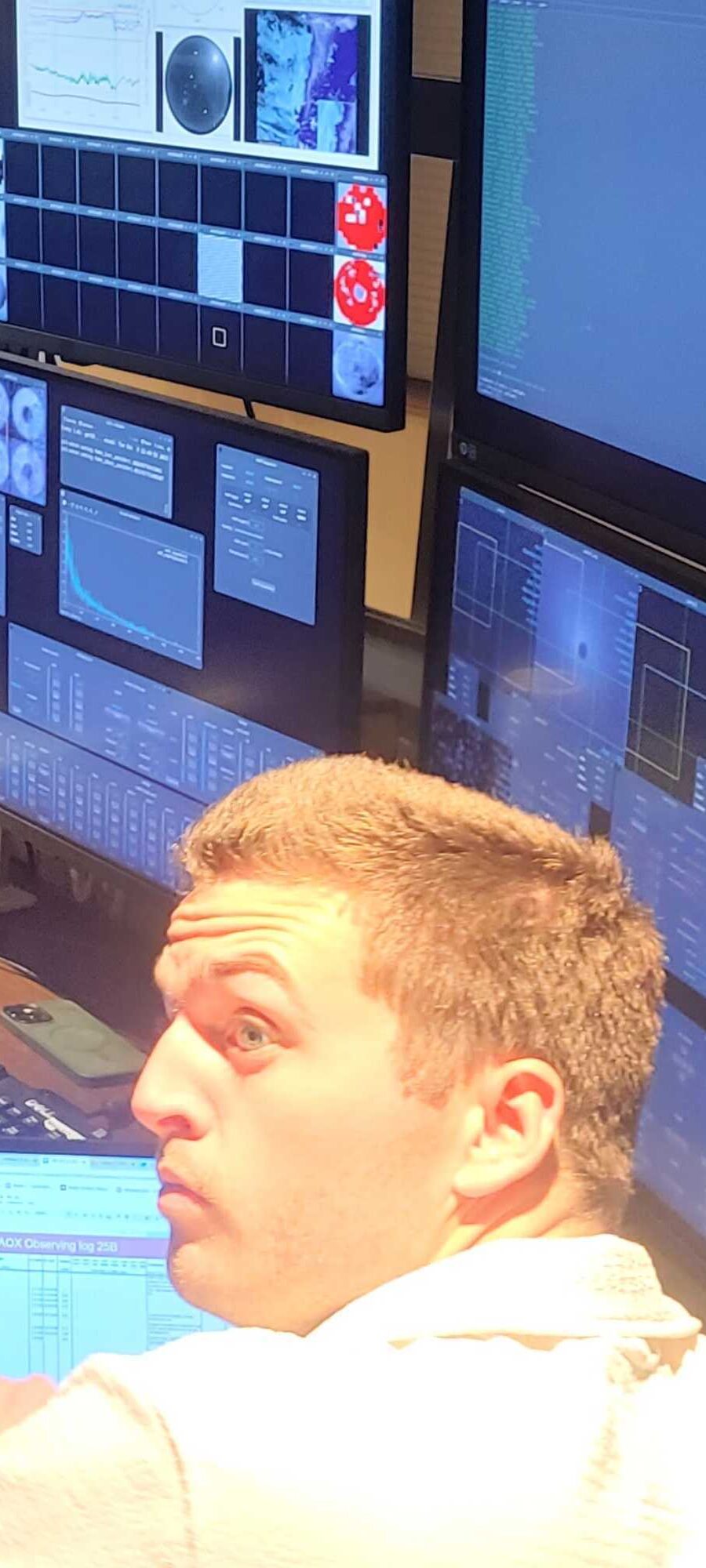 The night started with Elena and Katie operating the instrument for Miles. Miles is focused on further validating the polarimetric mode of the instrument. He is hoping to generate some beautiful Polarimetric Differential Imaging images of protoplanetary disks.