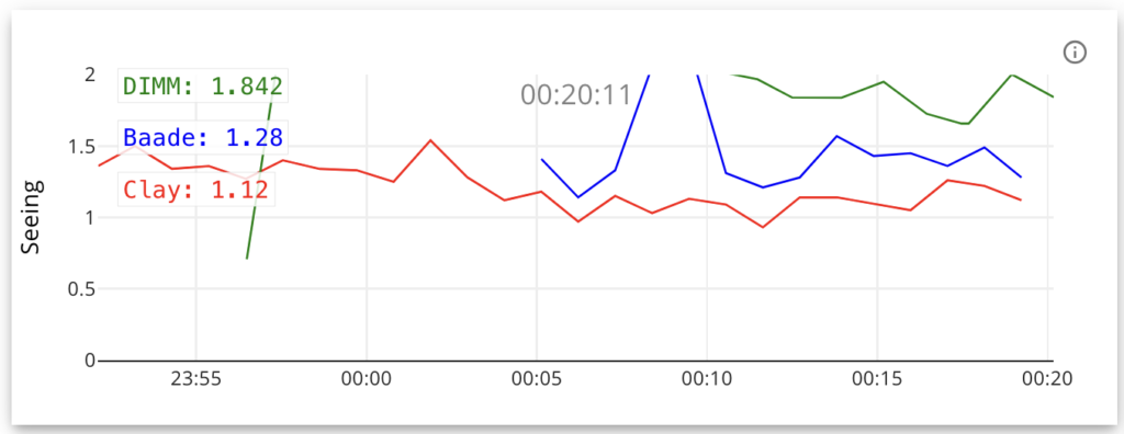 The first half of the night was shepherded by Parker, Katie, and Josh. We’re back on tau Ceti with the bells and whistles (iEFC dark holes and almost all the datastreams writing). The seeing gave us a good reason to work a little extra on internal source set up before it settled down to a fairly typical if a bit bumpy LCO night.