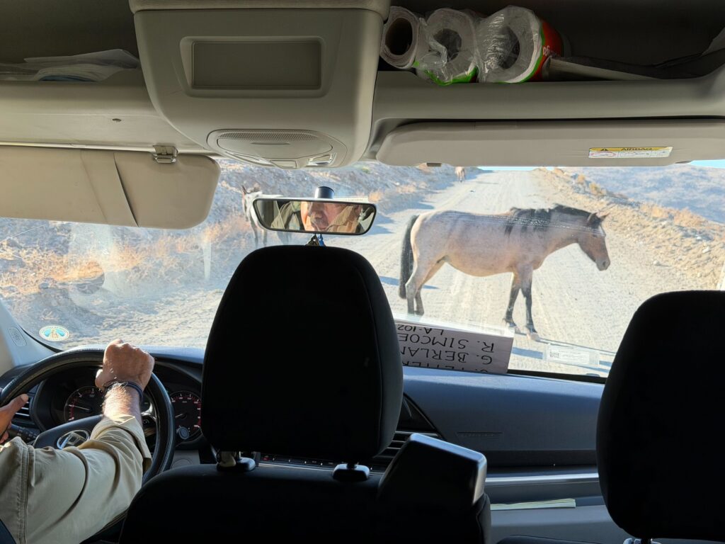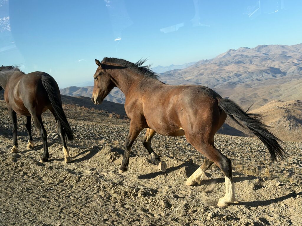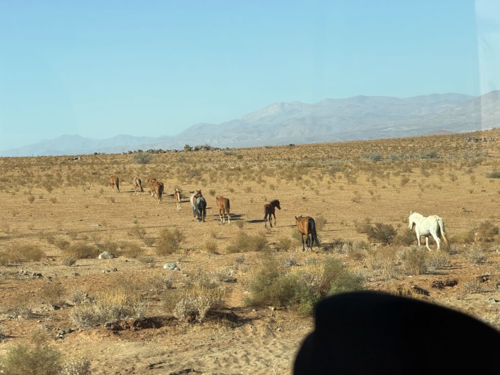 The welcoming committee to LCO was packed. Just as we turned off the highway a large wild horse heard greeted us. We ran into even more at the top of the mountain.