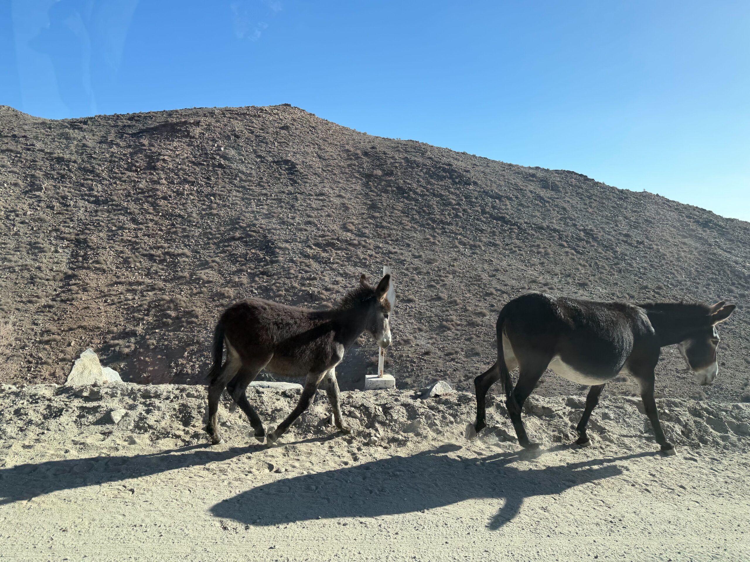 A family of Burros we’ve never seen before met us in the basin. One family was very bright white too! The more local mountain burros looked to have welcomed some new members recently as well.
