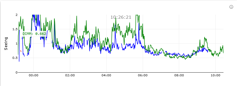 Throughout the night we had extremely variable seeing with patchy and thick clouds rolling over our observations. The atmosphere did try to convince us that it loved us. Look at the nice heart-shaped PSF we got from the atmosphere.