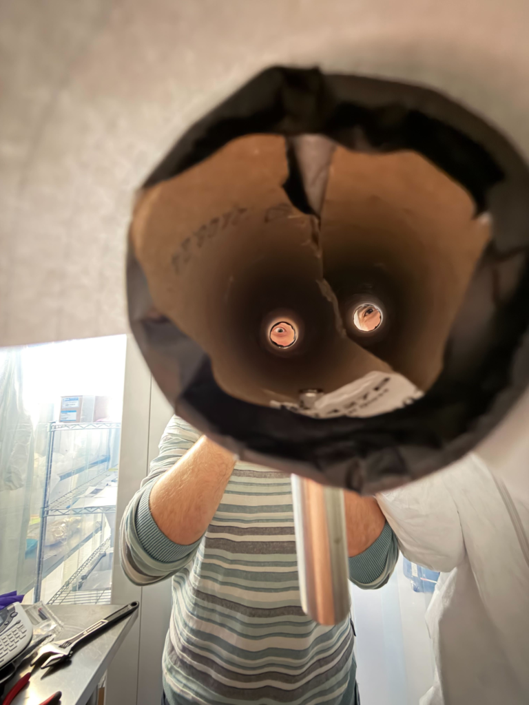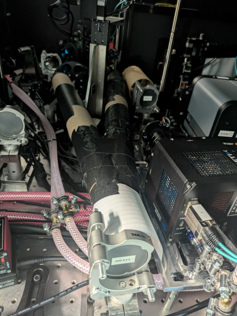 On our first and second day of work, Sebastiaan and I targeted the vibes of the instrument – tip/tilt dominated residuals that limit what we can do at our science plane. These aberrations could come from several sources – heat differences from warm motors/cameras causing convection, turbulence from fans/the blower and/or vibrations on the bench. The hunch from the team was more on the former, but we named the tests about the latter since the name sounded cooler. Sebastiaan and I came here armed with some high tech equipment to try and reduce these effects – about €20 of poster tubes and some old posts.