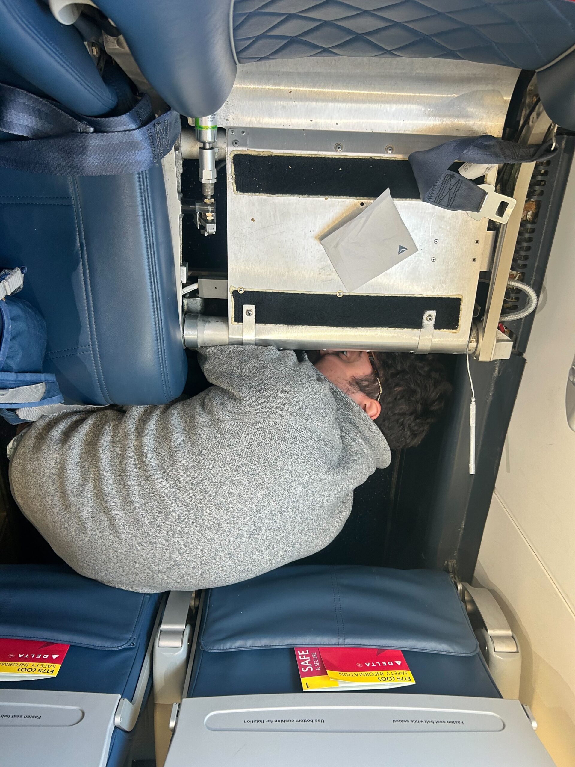 Ever wondered why, during the standard aircraft safety briefing, they tell you to ask for assistance if you lose an electronic device in your seat? Well, I no longer wonder that. Let’s just say the pilot himself came out to help at one point. The important part is that Josh and his earbud were reunited, safe and sound.